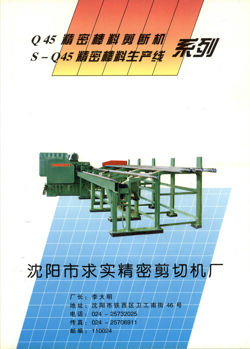 沈陽市求實精密剪切機廠,是專門從事精密棒料剪斷機的研制開發(fā)和生產(chǎn)的企業(yè)。企業(yè)技術(shù)力量雄厚,集中了國內(nèi)著名的精密棒料剪斷機設(shè)計、制造專家。我廠研制的精密棒料生產(chǎn)線,不僅擋住了進口,填補了國內(nèi)空白,還被中國鍛壓協(xié)會列入1996年8月至2001年9月大事件中。