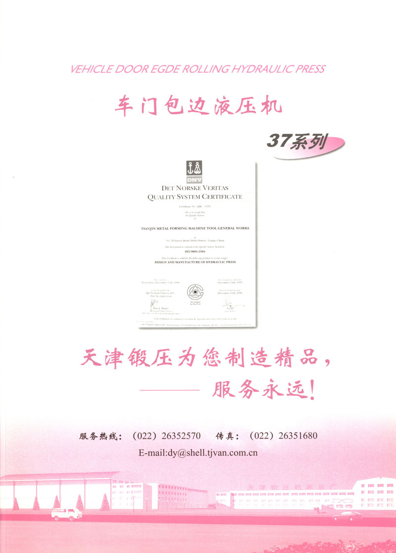 天津市鍛壓機(jī)床總廠是我國(guó)起步最早的企業(yè),現(xiàn)有固定資產(chǎn)2.4億元各類專業(yè)技術(shù)人員480人,是機(jī)械部大型骨干企業(yè)。自我廠自行設(shè)計(jì)國(guó)內(nèi)第一臺(tái)液壓機(jī),開創(chuàng)了我國(guó)中小型液壓機(jī)生產(chǎn)歷史以來(lái),目前擁有26個(gè)系列,300余品種,產(chǎn)品從80KN至5000KN,以形成年產(chǎn)1200臺(tái)各類液壓機(jī)的生產(chǎn)能力,居國(guó)內(nèi)同行業(yè)之首。1983年YT32-315四柱液壓機(jī)獲國(guó)家銀牌,1990年YT32-630/1030雙動(dòng)力拉伸液壓機(jī)一舉榮獲同行業(yè)唯一的國(guó)家金獎(jiǎng)另有部?jī)?yōu)產(chǎn)品3項(xiàng),市優(yōu)產(chǎn)品5項(xiàng)。產(chǎn)品廣泛適用于汽車制造、粉末冶金、金屬冷擠、輕工家電、化工機(jī)戒、航空航天、模具磨料、機(jī)戒制造等行業(yè),被國(guó)家指定為替代進(jìn)口產(chǎn)品,行銷全國(guó),產(chǎn)品出口到日本、荷蘭、東南亞等20多個(gè)地區(qū)和國(guó)家、市場(chǎng)占有率居全國(guó)同行業(yè)第一。