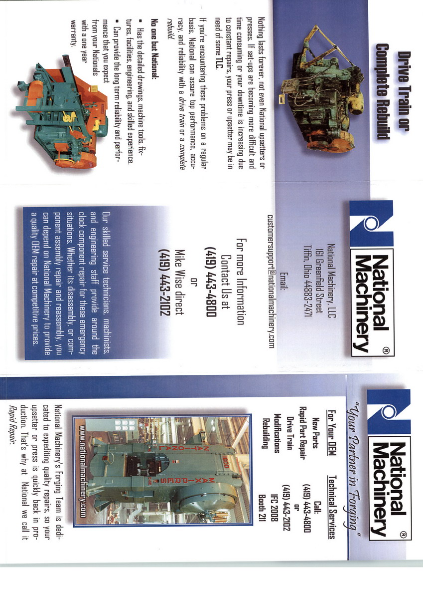 國家機(jī)械NationalMachinery是先進(jìn)的冷成型機(jī)械,工藝技術(shù)的全球領(lǐng)導(dǎo)者,和客戶支持的產(chǎn)品和服務(wù)。通過我們不斷的研究和發(fā)展,先進(jìn)的制造能力和銷售和服務(wù)遍布全球的網(wǎng)絡(luò),國家機(jī)器已經(jīng)牢固地確立了其作為“世界領(lǐng)先的金屬成形技術(shù)”的位置。